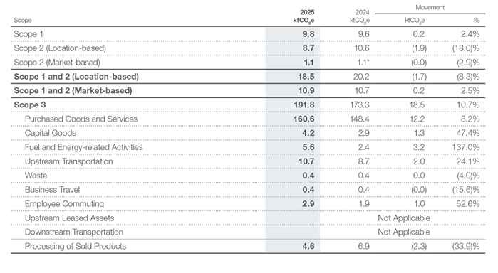 - * An error in an emissions factor was identified in the Scope 2 (Market-based) calculation in FY24. This has been restated in the emissions table where appropriate.
