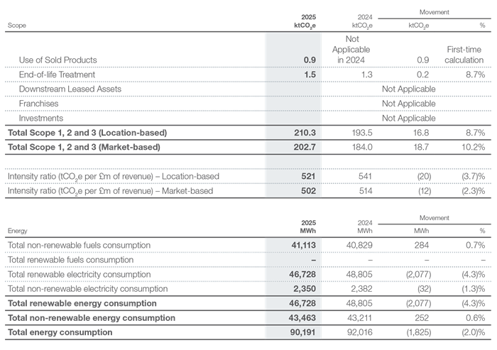 We have continued to refine our end-to-end carbon footprint methodology, which includes a full emissions analysis for 2024 and 2025, as set out in the table below. 2025 emissions data includes Alunet from the acquisition in March.